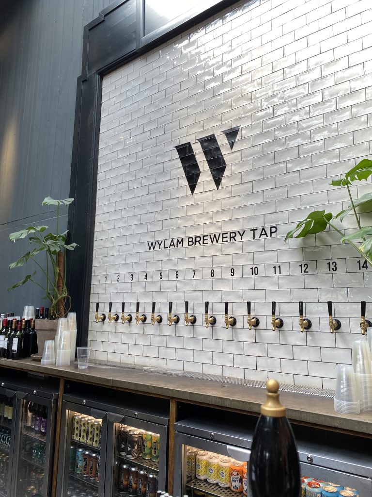 Upon arrival, you can purchase tokens for £4, each equating to one slice of pizza – these can be returned at the end if you don’t use them, so it’s worth getting a few! But you don’t have to go straight to the pizza, of course. The brewery has an endless selection of ciders, cocktails, gins, and even a wall of beer taps!