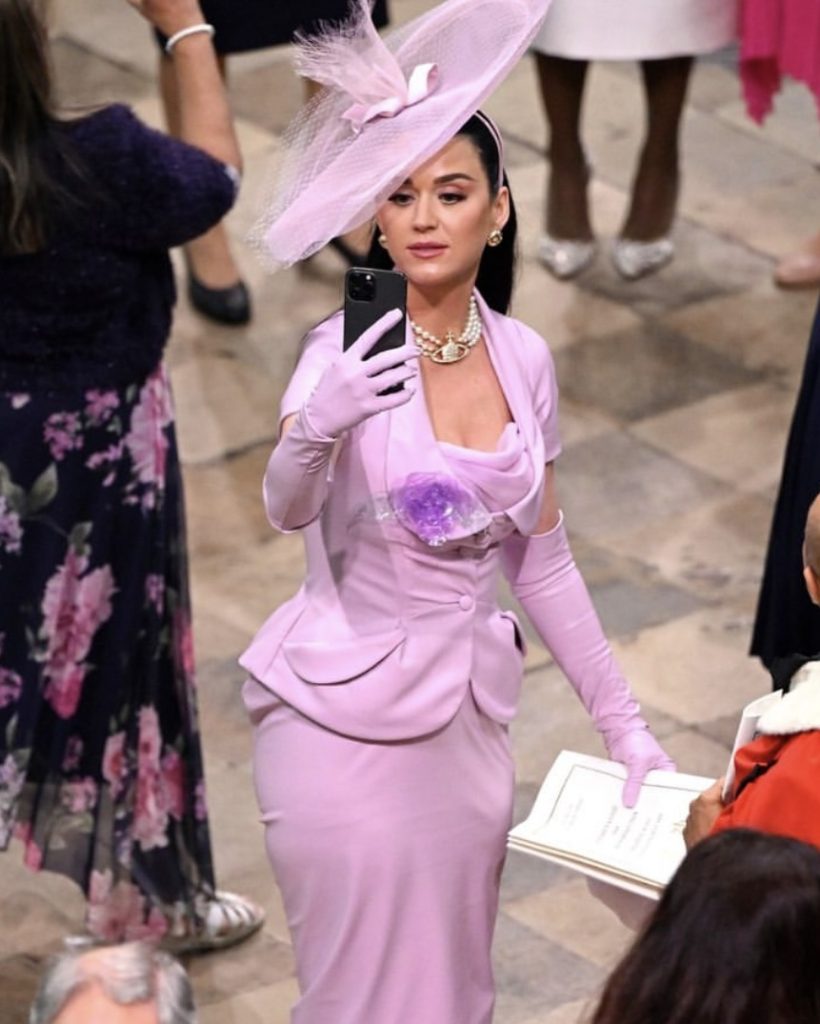Katy Perry made a statement with her arrival, wearing a full lilac Vivienne Westwood ensemble. The singer looked sophisticated and regal as she accessorised the outfit with a stunning three-strand pearl Vivienne Westwood necklace that perfectly complemented the outfit. Perry’s fashion choice was a departure from her usual style but it was befitting of the grand occasion. Her lilac attire added a touch of modernity to the otherwise traditional event.